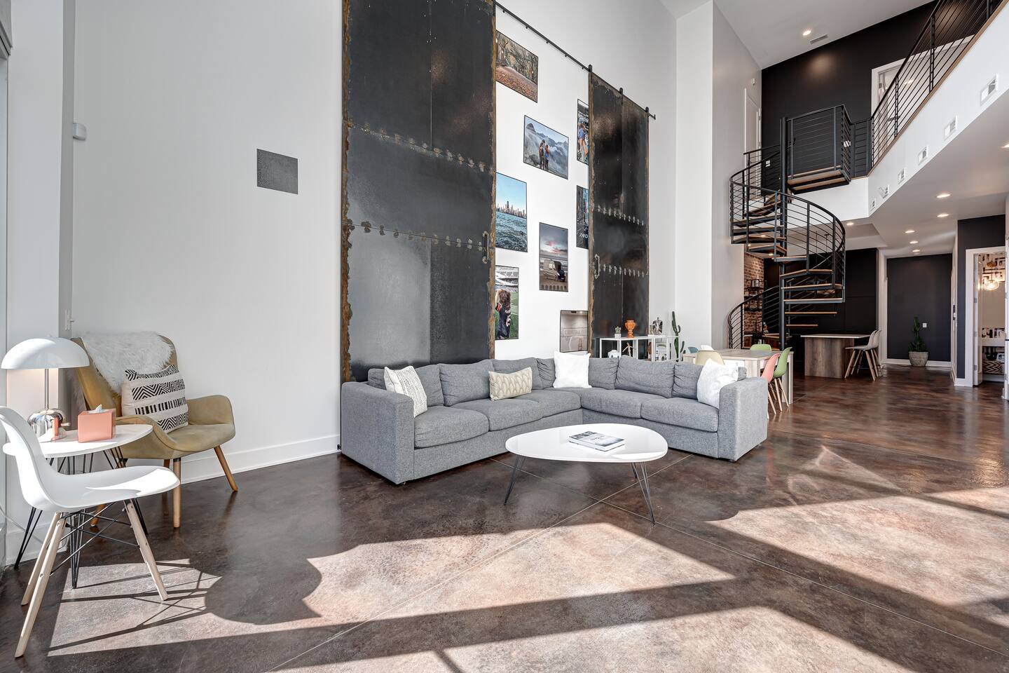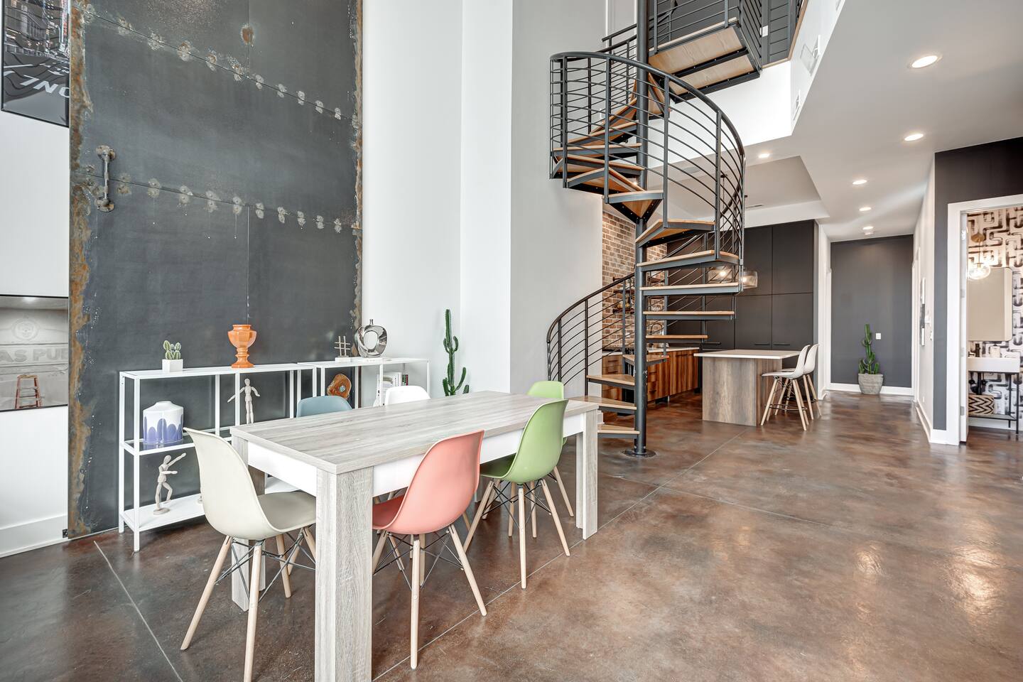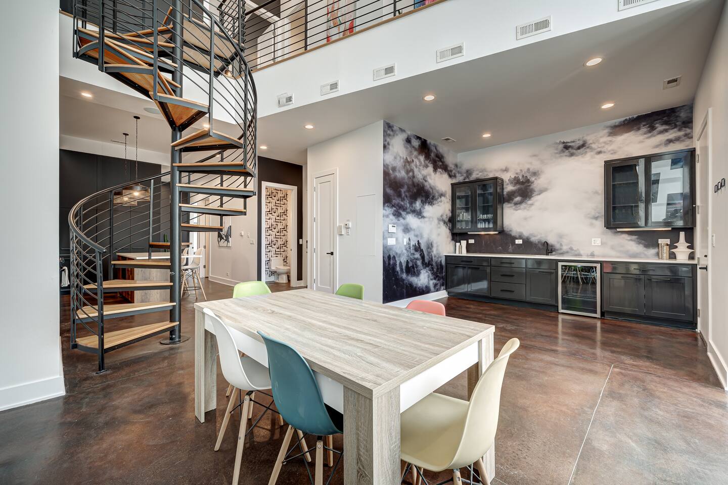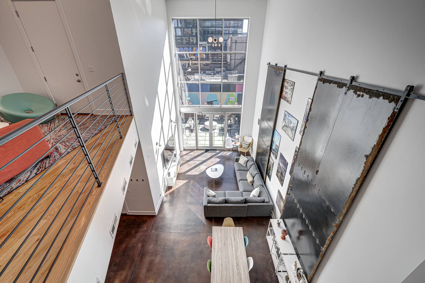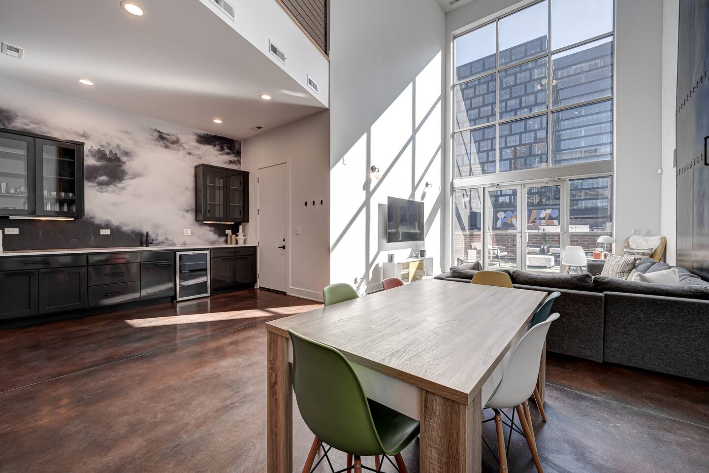 Discover our spacious, two-level modern loft, perfect for business travelers. Featuring sky-high ceilings, floor-to-ceiling windows, and a newly renovated private terrace with a fire pit. Located in the heart of Restaurant Row, just two minutes from downtown. Enjoy a luxury stay with one dedicated parking spot included. Ideal for solo travelers or couples seeking a stylish urban retreat.