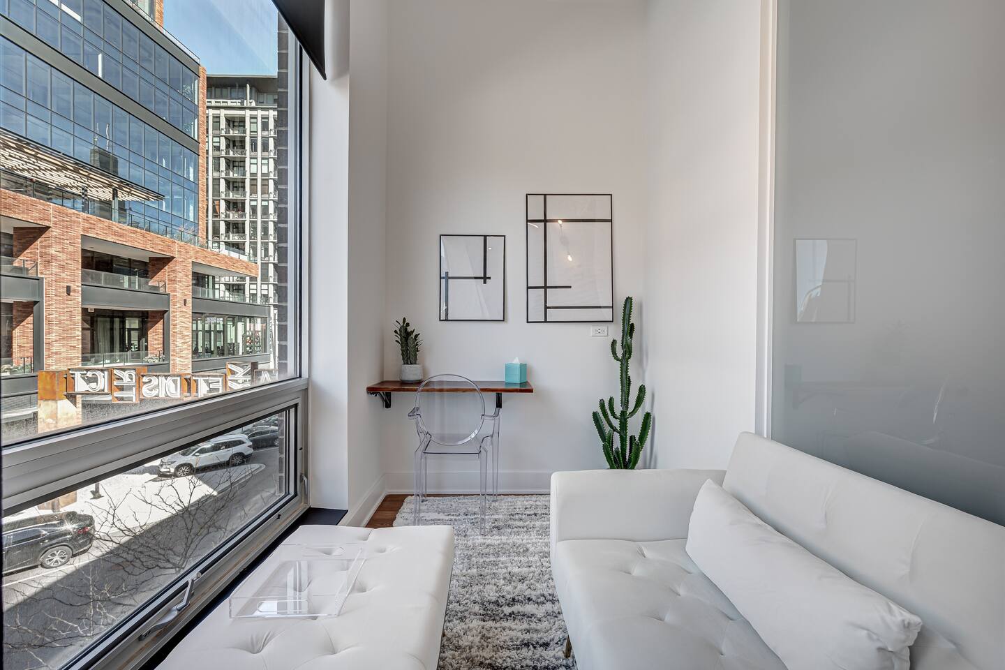 Welcome to our spacious, two-level modern loft, filled with natural light from enormous floor-to-ceiling windows that create a warm and inviting atmosphere. The home has been recently updated with luxury renovations, making it a perfect urban getaway or a productive space for business travelers. Key Features: * **Open-Concept Living:** Soaring ceilings and an open layout provide a sense of space and freedom. * **Gourmet Kitchen:** A fully renovated, modern kitchen ready for your culinary adventures. * **Updated Bathrooms:** Enjoy the comfort and style of our newly renovated bathrooms. * **Private Terrace:** Step outside to your own private terrace, complete with a cozy fire pit – perfect for relaxing on a cool evening.